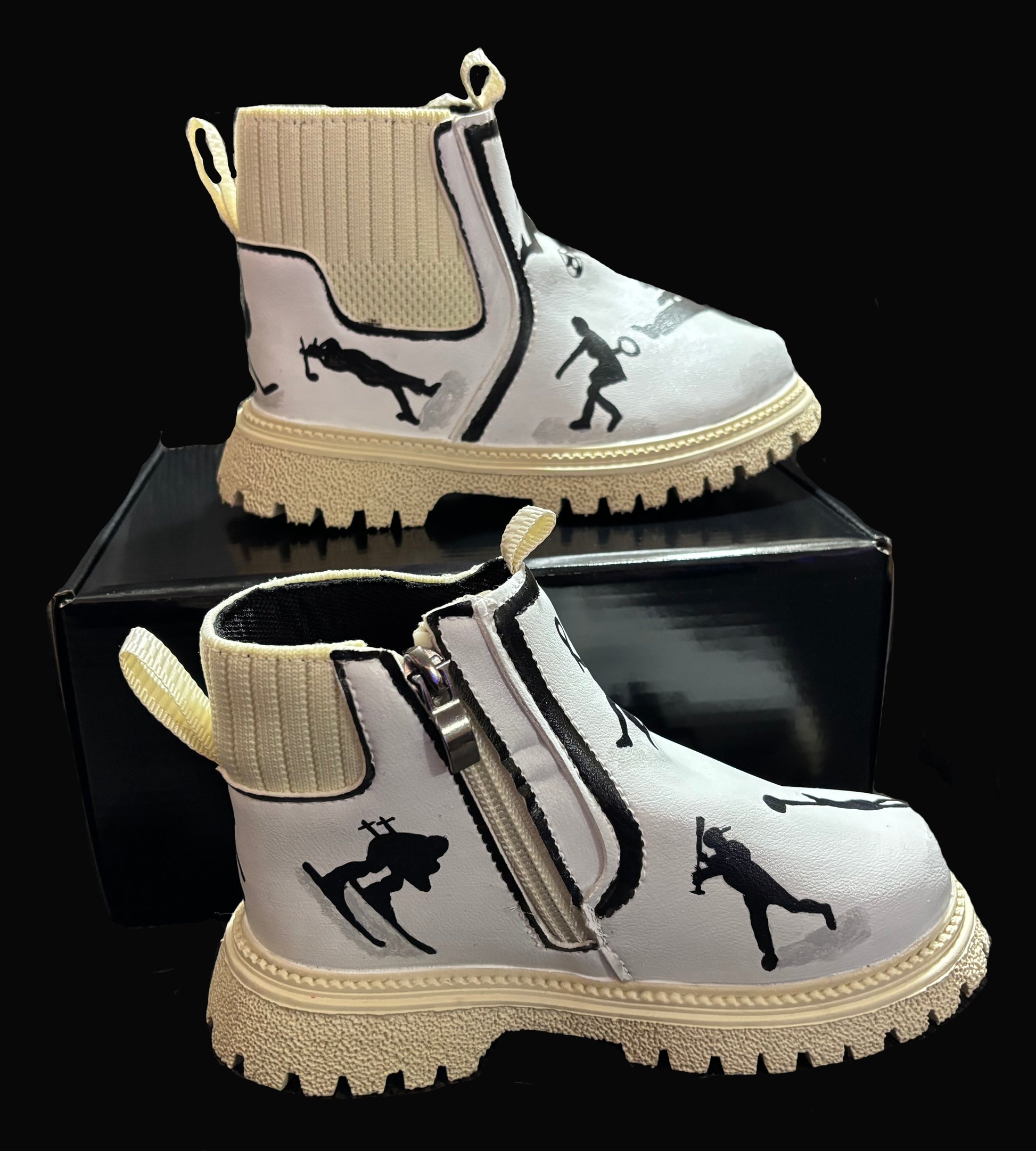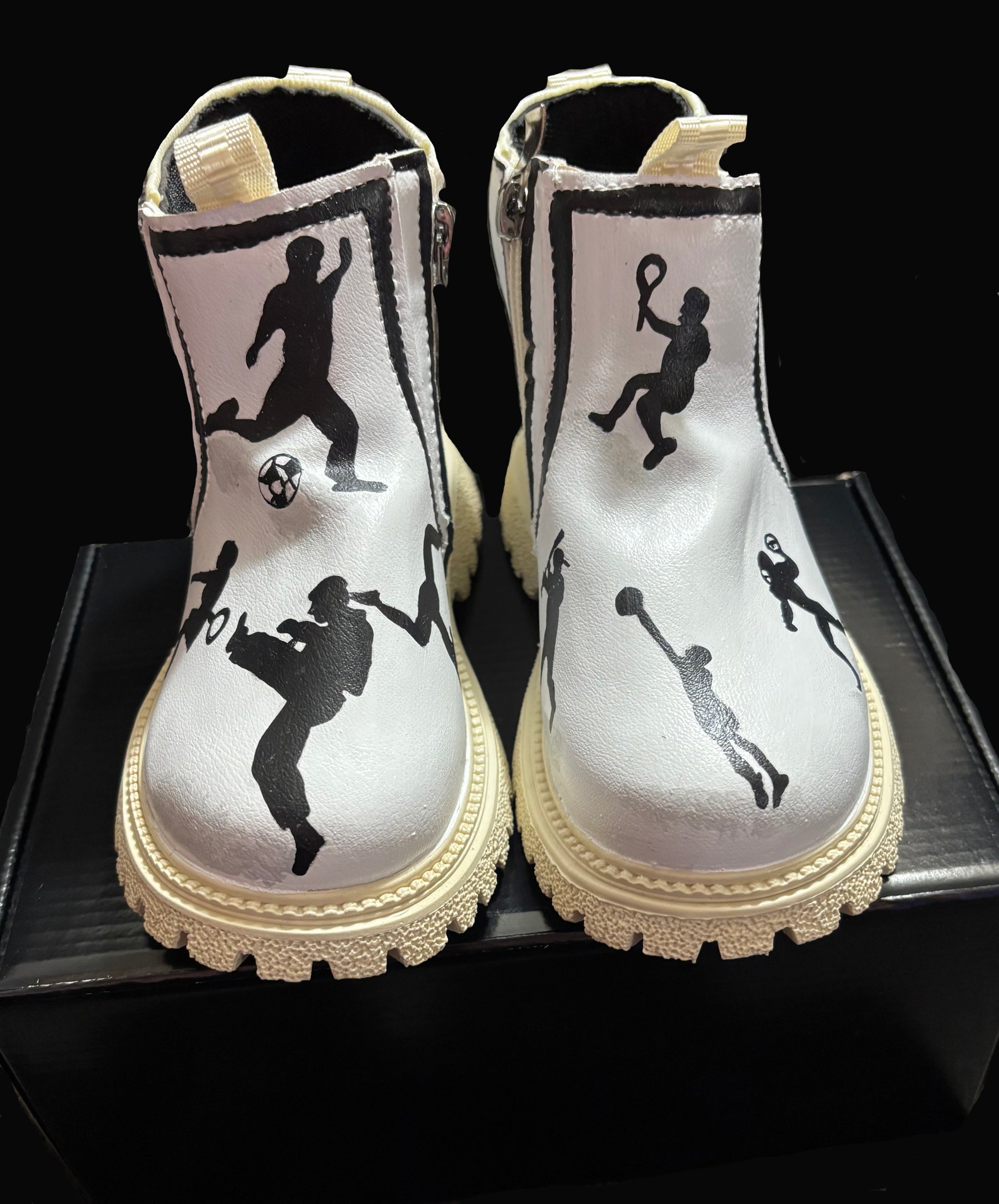 Children’s Custom Hand Painted, Sports Silhouettes Boots - Size 10K