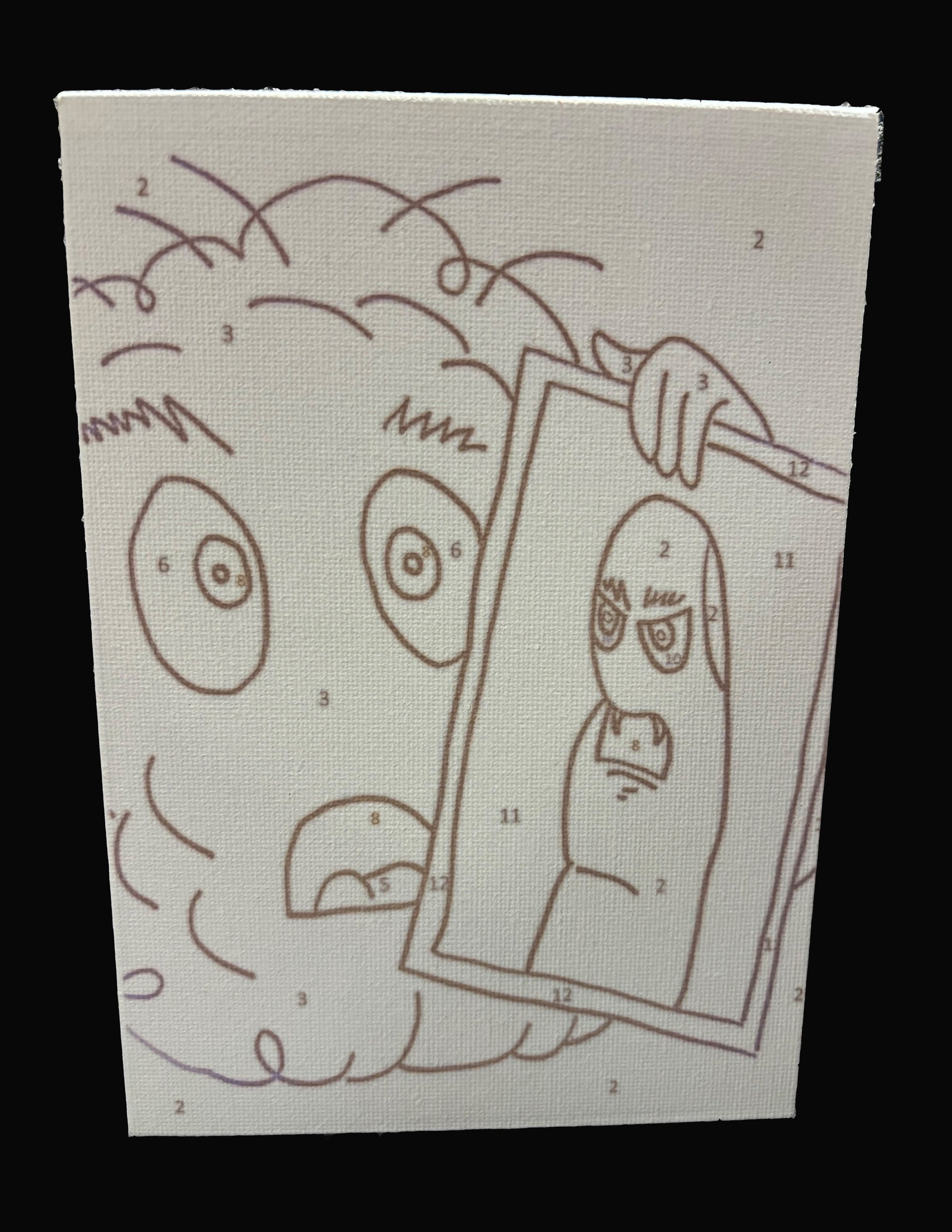 The canvas is sealed in plastic, protecting it until it's ready for use. The lines are clearly printed, and the corresponding numbers are legible, ensuring that the painter can easily follow the instructions.