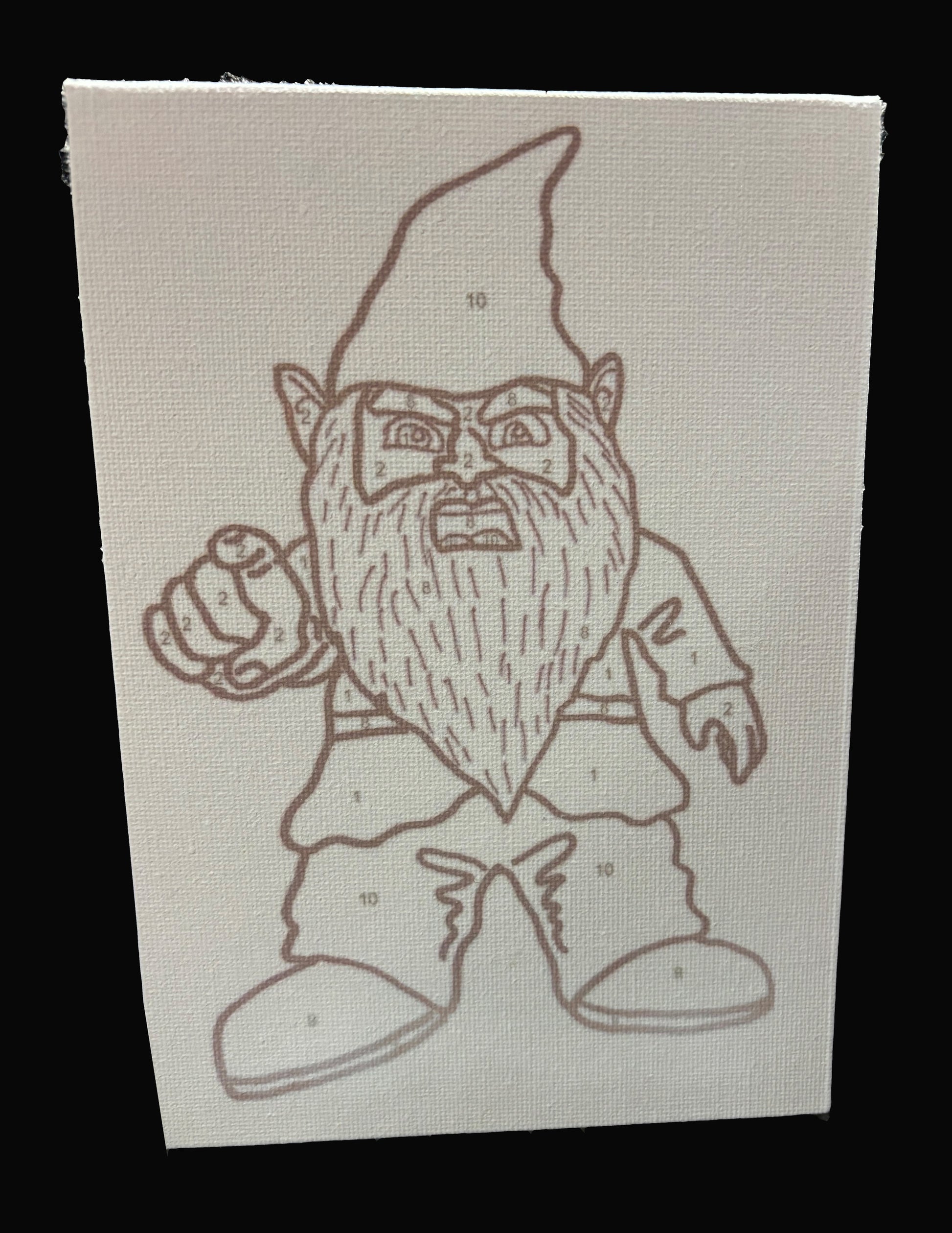 The canvas has a pre-drawn outline of an image, with numbered sections corresponding to specific colors. The detailed line art guides the painter on where to apply each color, making it a fun and structured activity.